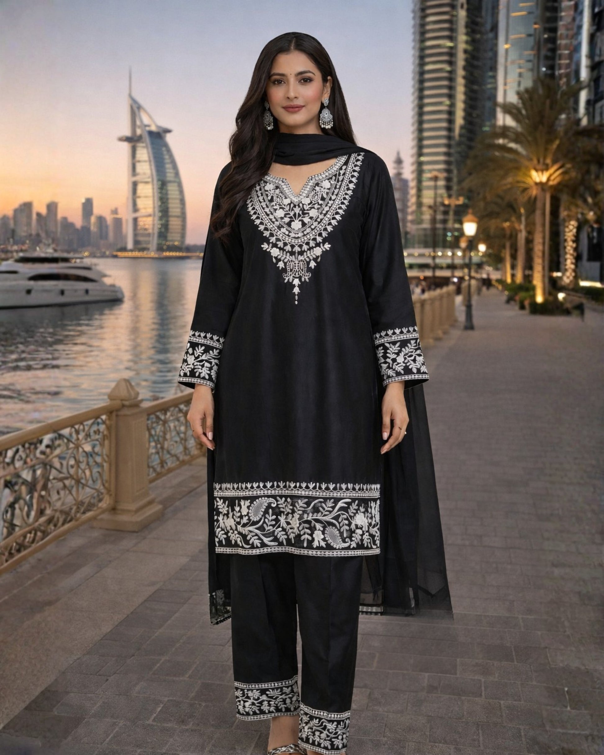 3 Piece Complete Embroidered Silk Suit