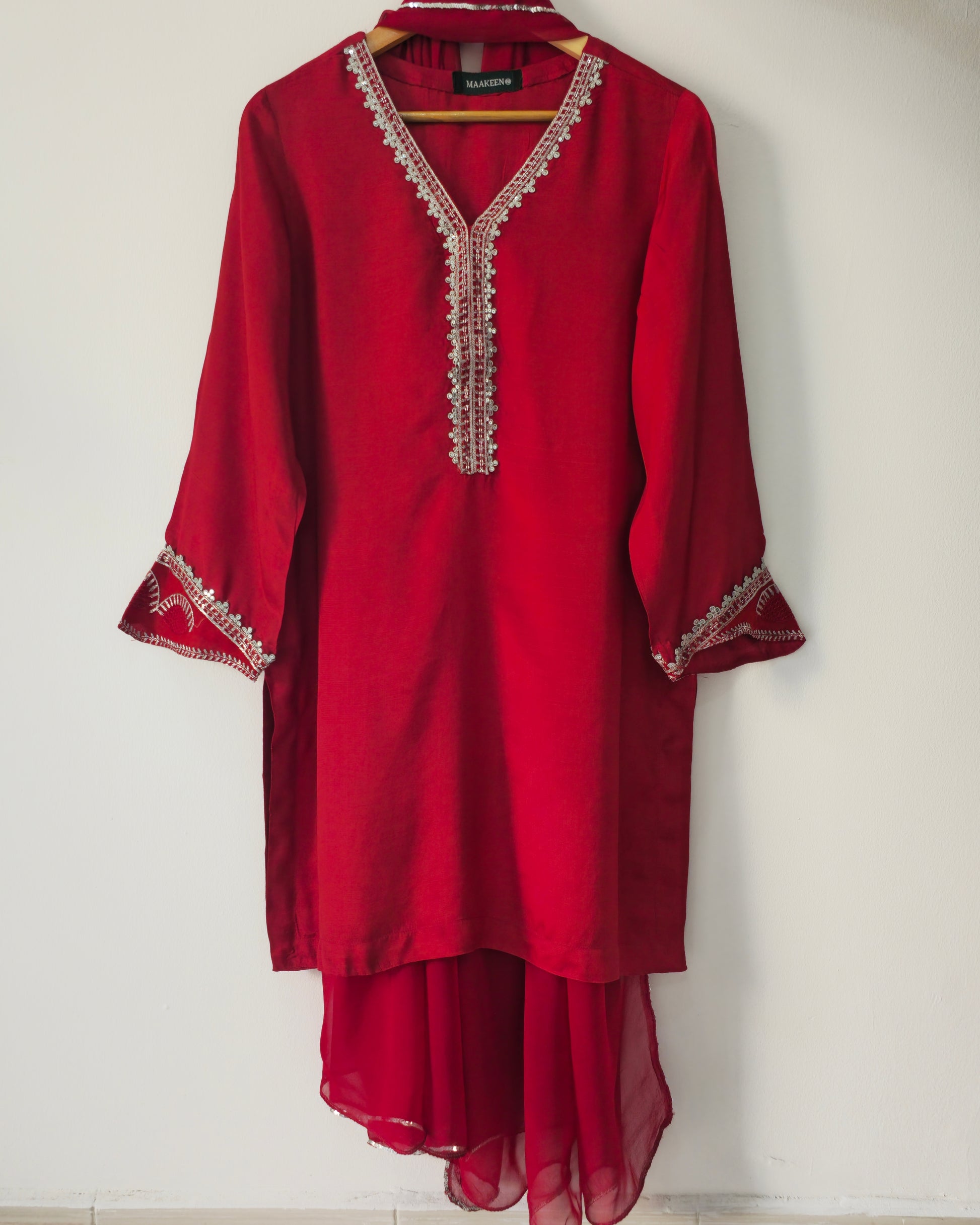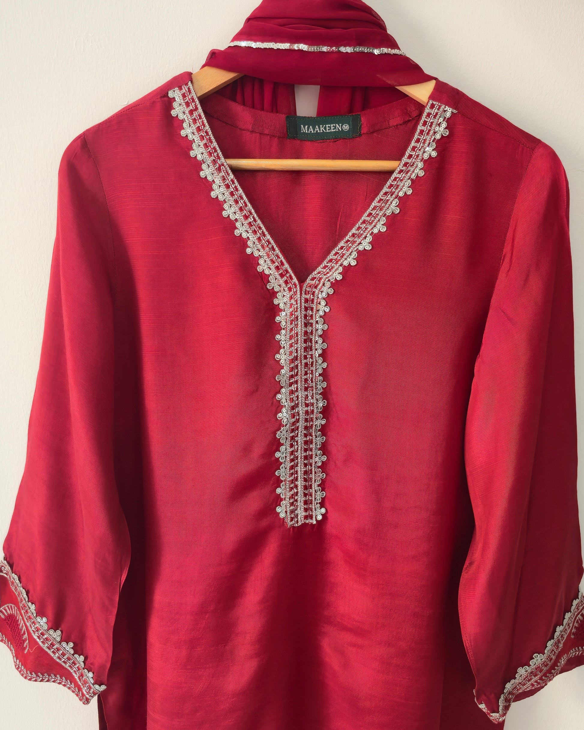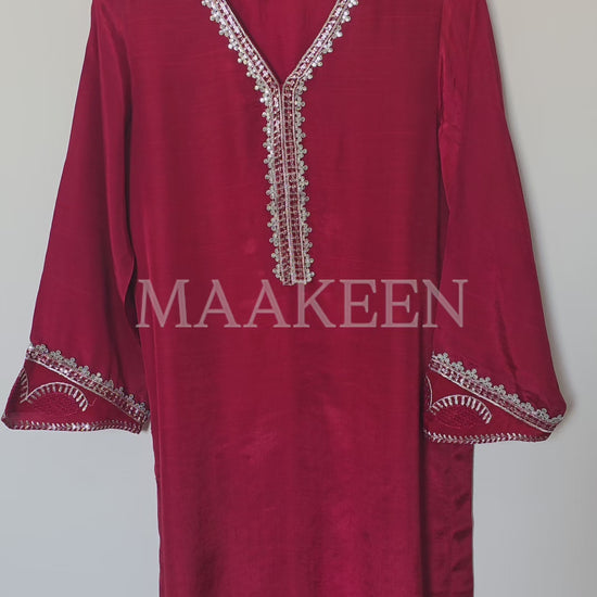 Silk short shirt & trendy farshi shalwar